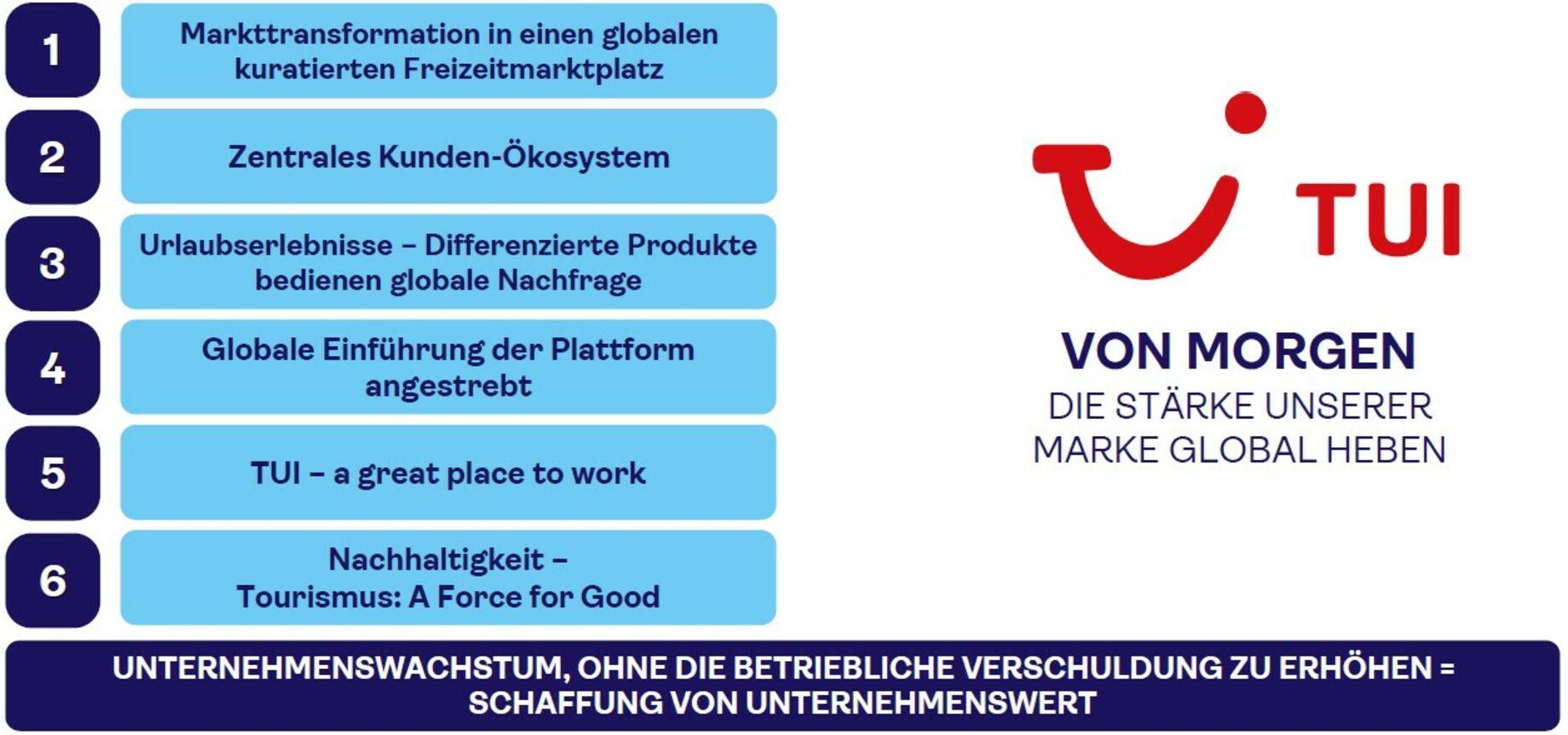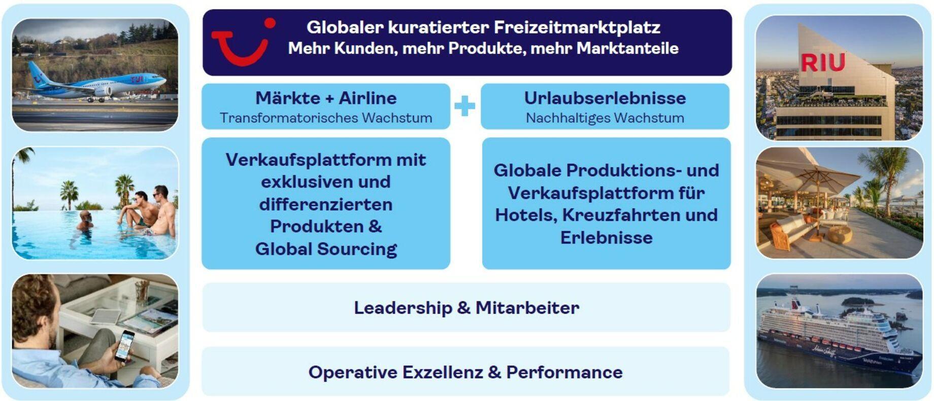 TUI wird zu einem wachsenden, skalierbaren und globalen Tourismusunternehmen mit ehrgeizigen Rentabilitätszielen und der Freisetzung erheblicher Werte durch den Rollout der globalen Plattform und so die Erschließung des Customer Lifetime Value.
